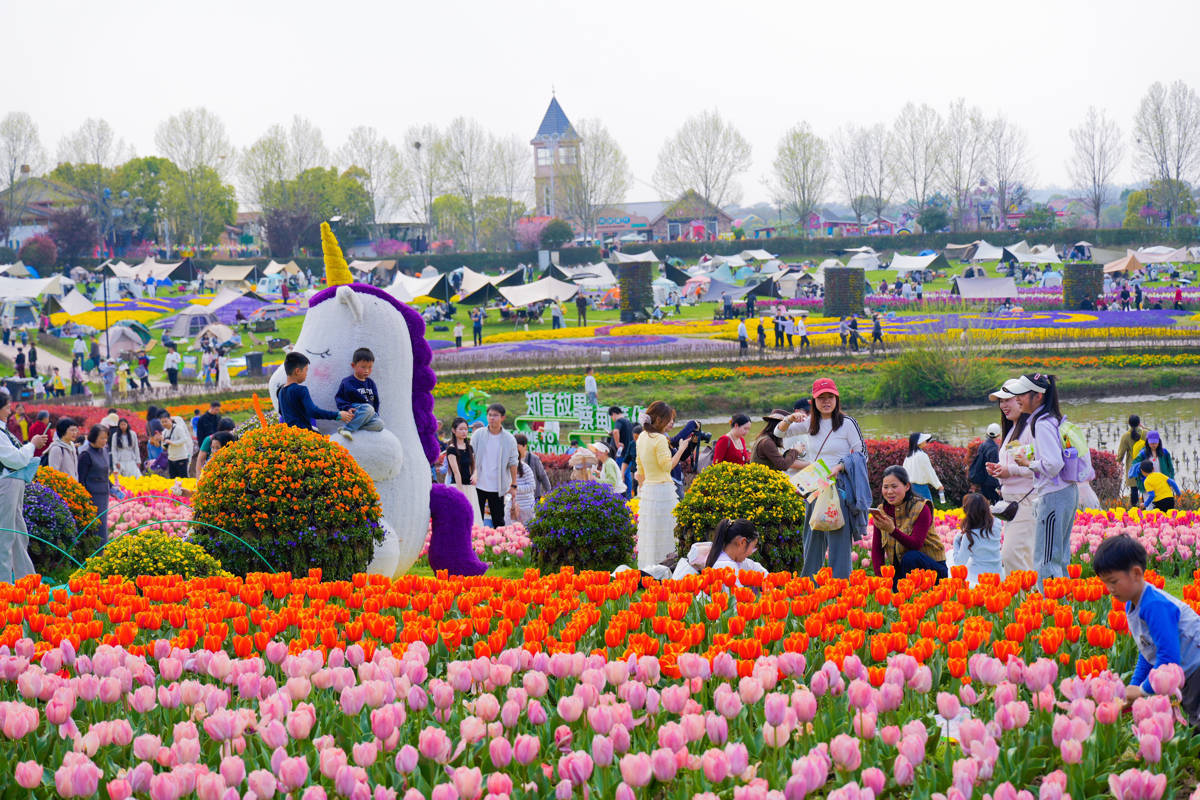 武汉蔡甸花博汇千亩花海迎来盛花期,吸引众多游客 景区供图
